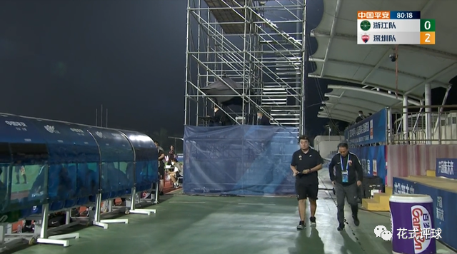 几分钟后,镜头捕捉到沈祥福离开球场的情景(下图)。老帅一脸落寞,不过好在球队拿3分问题不大。