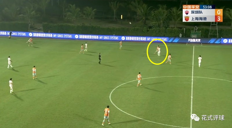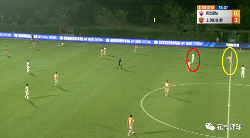 仔细看(下图),上港后卫刚传球的瞬间,保利尼奥周围5米内并没有深足球员。