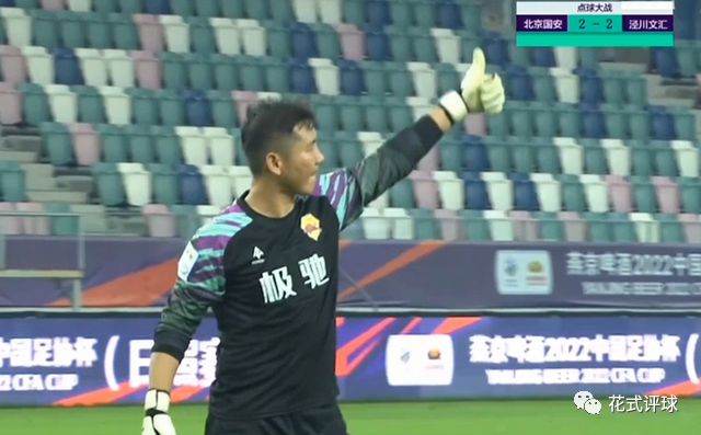 事实证明,国安将士并没有放弃!针对泾川文汇最后一个点球(下图)是否违规,引起了国安将士集体质疑,国安球员和教练组成员都在围追着裁判组讨说法。镜头显示,就在泾川文汇球员庆祝比赛胜利的时候,北京国安将士们集体围着表达不满,认为对手的点球有违规嫌疑。看到这情景,主裁判跟边裁等人在一起商讨(下图)。
