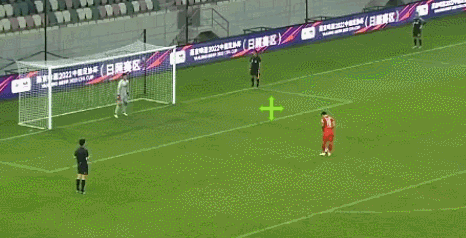 仔细看泾川文汇队这个点球(上图),非常具有迷惑性。罚球的球员先是站在罚球点后假装踩平草皮,然而右脚往后退出一步,当郭全博以为对手要退后拉开一定的空间来助跑踢球之时,不料对方却不讲“武德”,直接就把球推向球门,打个郭全博措手不及。