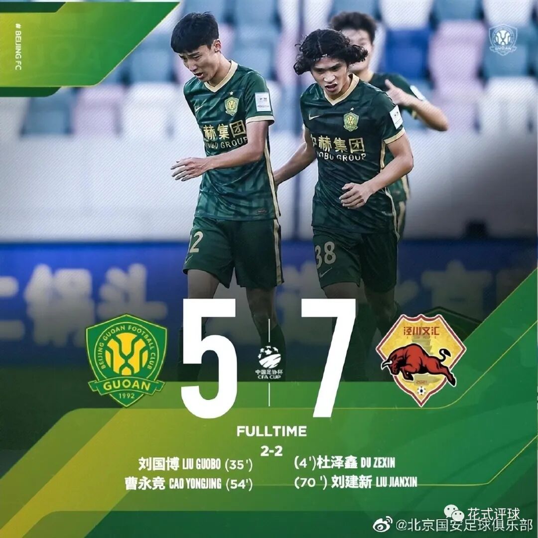 第69分钟,泾川文汇利用地面配合打入国安禁区,并晃过国安后卫的防守把球打进死角。在常规比赛时间内双方踢成2比2,最终进入点球大战。