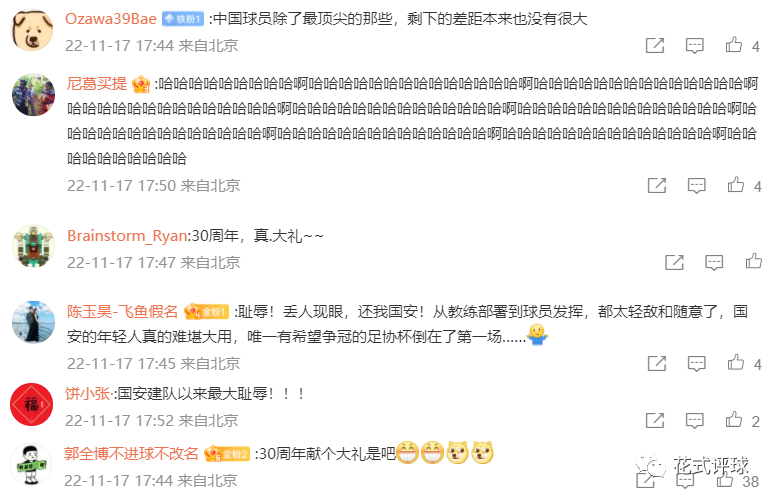 赛后,北京国安官微发表了比赛总结,国安球迷纷纷在评论区表达不满。有球迷讽刺这就像是俱乐部30周年的一份“大礼”,不少球迷纷纷留言“丢人现眼”,更有球迷直言,这是“国安建队以来最大耻辱”。