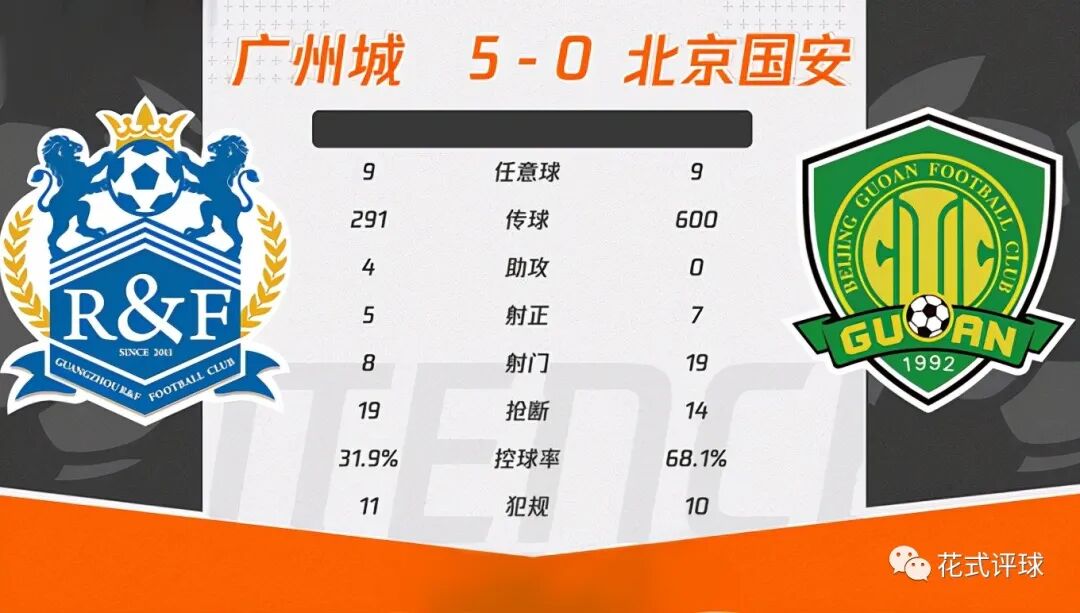 控球率:国安68.1%,广州城队才31.9%。传球数量:国安高达600次,是广州城的2倍有余。即便是射门数量,国安19次也远多于广州城的8次。但只见雷声不下雨,国安的所有进攻都被对手化险为夷,反倒是广州城的进攻,却刀刀见血,多次进球,都是靠快速反击得手。