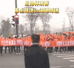 山东泰山球迷站在人行道这一边,上港球迷站在另一边(上图),形成了大PK的姿态。