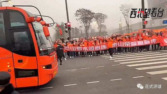 比赛当天,双方球迷分别站在体育场外的马路两边夹道欢迎球队大巴的到来。
