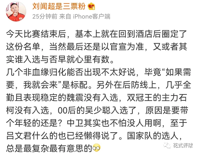 谈到吕文君的落选,记者一言以蔽之,直言他已经懒得说了。最后,他意味深长地写道:“国家队的选人,总是最复杂最有意思的。”