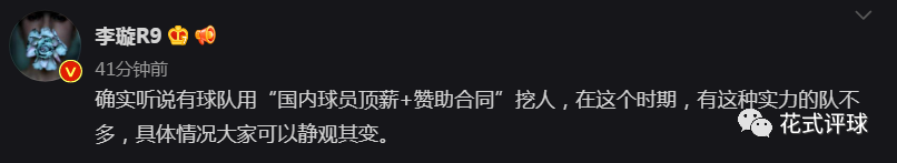 李璇在个人社交平台上表示她也听说到了有球队用“国内球员顶薪+赞助合同”的办法在挖人(下图)。