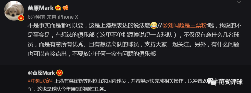 对于苗原的爆料,上港跟队记者刘闻超也在评论区中进行了回应(下图)。