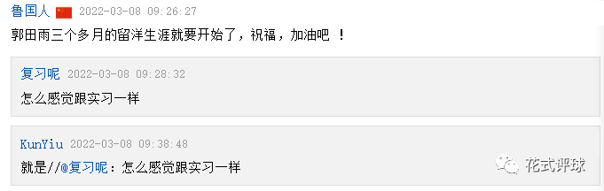 郭田雨这留洋方式引起了球迷的调侃,有球迷留言表示:“怎么感觉跟实习(生)一样。”还真有点像,新员工到公司实习,一般就是3个月以内。
