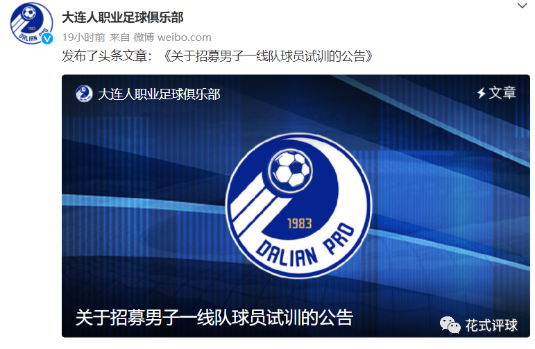 上赛季,大连人队不幸降级,新赛季能否重返中超还未可知。这支球队曾经阔过,一出手就是卡拉斯科、贝尼特斯。如今“金元足球”凋零,从这则公告来看,俱乐部也开始转变了经营思路。