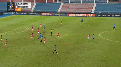 紧接着,两名对手继续紧逼夹防,他轻巧地把球一扣,把两名对手甩在身后。轻松过掉了对方。无奈川崎前锋的防守实在紧密,他刚过掉两名对手,前面又冲上来一人,一脚把球踢到他的身上,球高高地反弹到了川崎门将的手里。