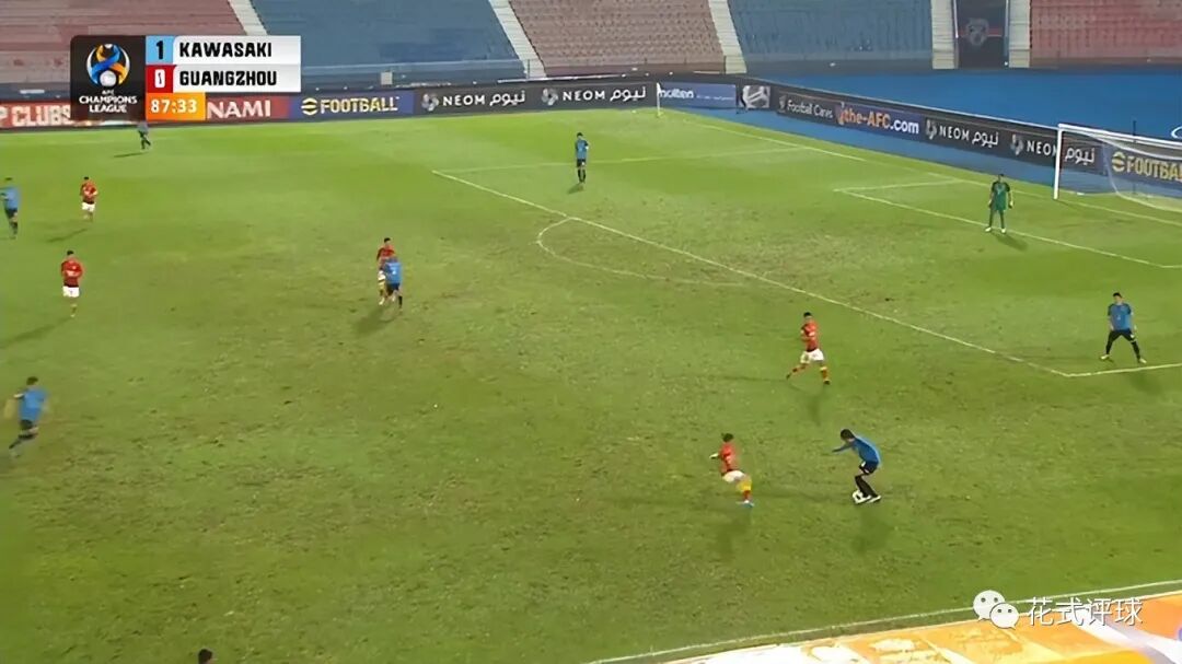 亚冠最后一轮对阵川崎前锋,广州队青年军敢抢敢拼,小伙子们也能表现出从容不迫的一面。这点能从(下面)这次盘带过人,以及传球配合可以看出。