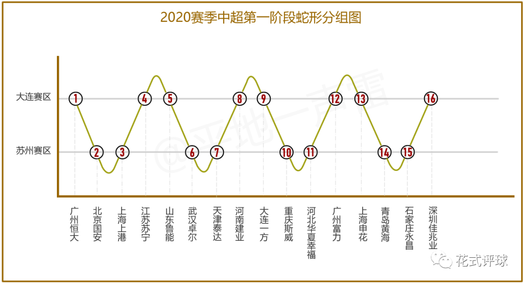 从2020赛季开始,由于疫情的关系,中超变成了赛会制。在众多的分组方法中,足协采用了蛇形分组法,据说这个方法相对比较公平。