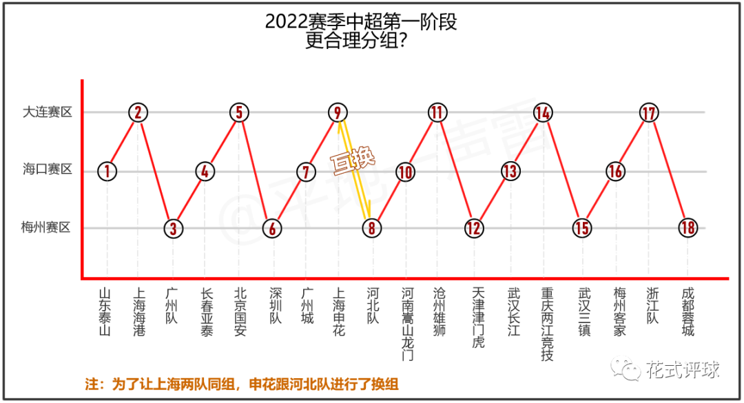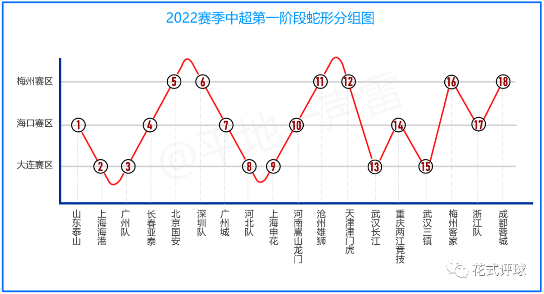 刚开始左看右看都看不出所以然,鼓捣了大半天才恍然大悟,2022赛季中超的蛇形分组原来是这样画出来的。