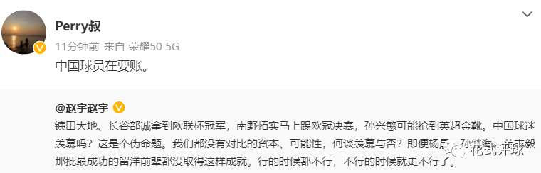 人家的球员在忙着欧战夺冠,我们的球员在干嘛呢?另一记者斐力的留言让人哭笑不得。