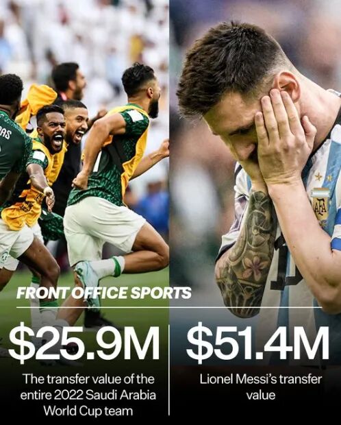 在刚刚结束的一场世界杯C组的小组赛上,阿根廷与沙特相遇。这一场比赛还没有开始踢,几乎全世界的球迷都觉得沙特没有戏,球队肯定要迎来一场惨败。为什么这么说呢?第一,阿根廷的实力非常强。在世界排名上,阿根廷高居世界第3位;而沙特呢?仅为第51位。第二,阿根廷的战绩很华丽。最近36场比赛,阿根廷从来没有输过,其中战胜过巴西、意大利等强队;沙特呢?战绩很一般。第三,阿根廷星光熠熠。梅西、劳塔罗、迪马利亚、德保罗等球员都是五大联赛的主力球员;沙特呢?主力球员几乎都在本国联赛踢球。