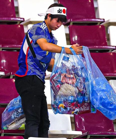 一直以来,日本队的球迷好像都是如此。不管他们走到哪里,他们都会把自己制造的垃圾或者是看到的垃圾带走。可以说,这是日本人的一种生活习惯吧。这一次,日本队的这种行为被放大,造成了不小的轰动。有一说一,这样的行为是值得鼓励也是值得学习的。