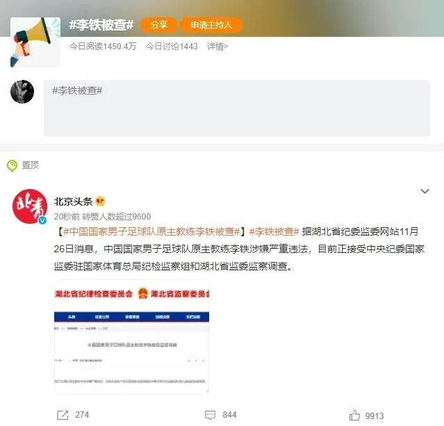 之前,李铁在参加培训的时候被相关部门带走调查。当初有两种声音在网上传播,一种是李铁只是接受正常的调查,调查完了很快就能回来了,大家可以等着听他解说世界杯就行了。对了,那个时候李铁刚被某平台选入世界杯解说团队内的嘉宾。据说这么说的是知情人士,其还接受了权威媒体的采访。不过,当时不少人对这样的说法有质疑,但并没有否认。