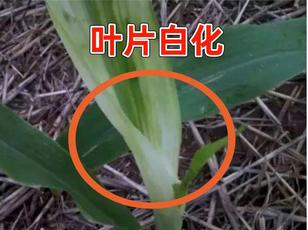 药害症状主要表现为玉米叶片白化(前期褪色但不干枯),白化后会影响光合作用,同时也会对玉米的生长有比较明显的抑制作用,而且用量越大,药害越严重。