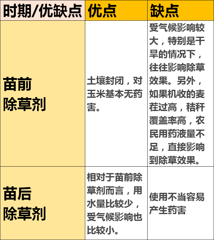 根据玉米的不同生长阶段,使用的除草剂类型也是不一样的,主要有下面这两种类型: