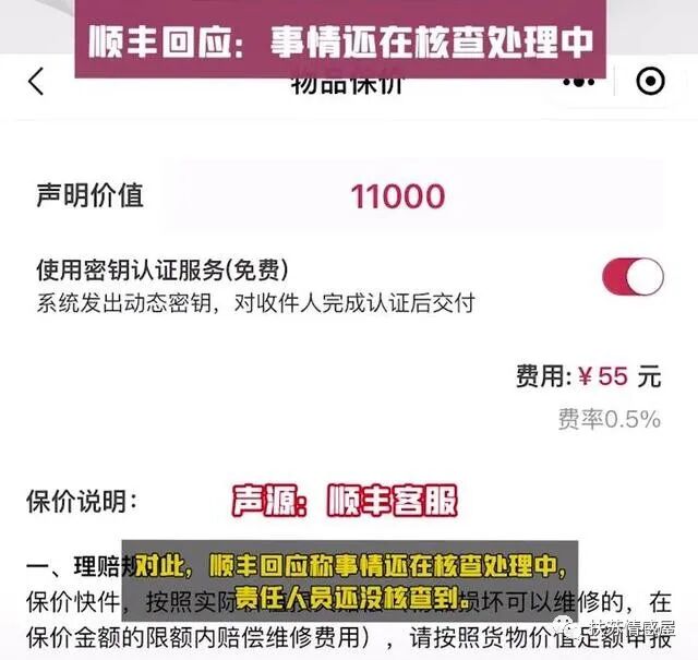 贾女士告诉记者,现在他们客服就是揪着二元保价哪里,说我就是花了两块钱报价,最高就是赔一千,多的顺丰公司就不想赔,我会用自己的方式维护我的合法权益。