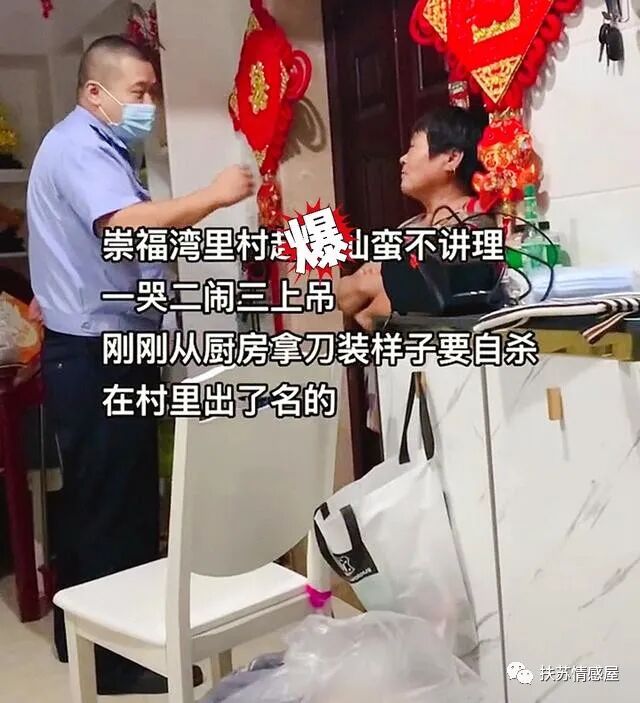 民警上门以后,这个所谓的婆婆就换了新花招,在民警面前又哭又闹,甚至还拿出了失传的绝学,一哭二闹三上吊,堵住门口不让任何人离开!