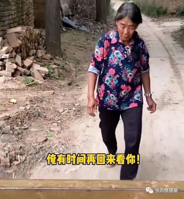 看到女儿的车远去,老人在后面颤颤巍巍地走着,双手不停地抹泪,她想把钱还给女儿又追不上,只能眼睁睁地看着女儿走远。