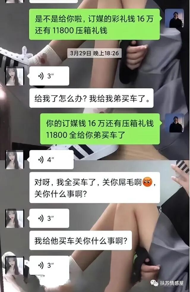 据悉,小伙是在过年的时候跟女方相亲认识,两个人认识才几天,女方家就催促两个人订婚,小伙按照约定给了16万彩礼,压箱底的钱11800元。