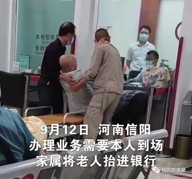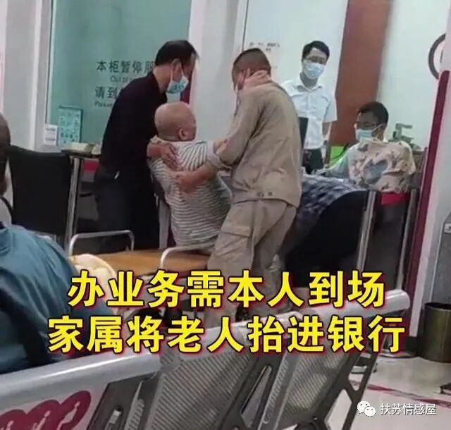 抬老人到银行的这一幕,刚好被大厅内储户看见,纷纷表示不可思议,老人都已经这样了,还要被家属抬来抬去的折腾,难道银行不能上门办理?