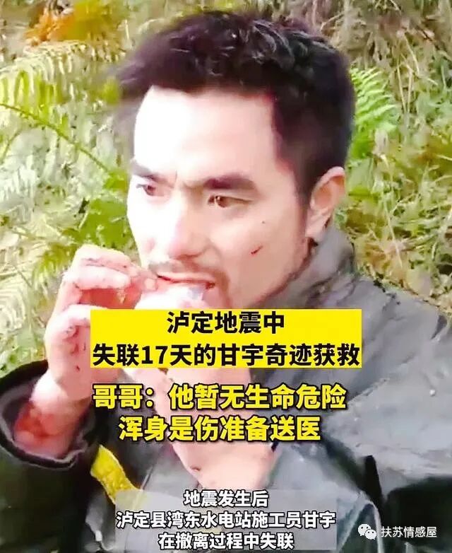 甘宇哥哥表示,我第一眼看到他的时候浑身是伤,双手在不停地颤抖,并没有生命危险,我都不敢想象这些天他到底是怎么度的。