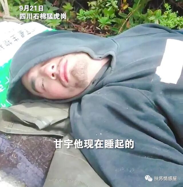 从罗勇哪里得知还有工友被困,就原味从来没有停止寻找,日日夜夜的在附近山脉搜寻,半个月以后,失踪了17天的甘宇终于被找到。