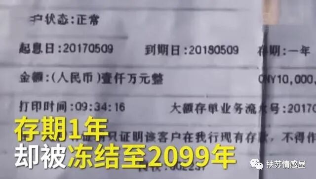 女子将1000万存入银行,三天后显示莫名被冻结,跑到银行找说法,银行说要等到2099年才能取。