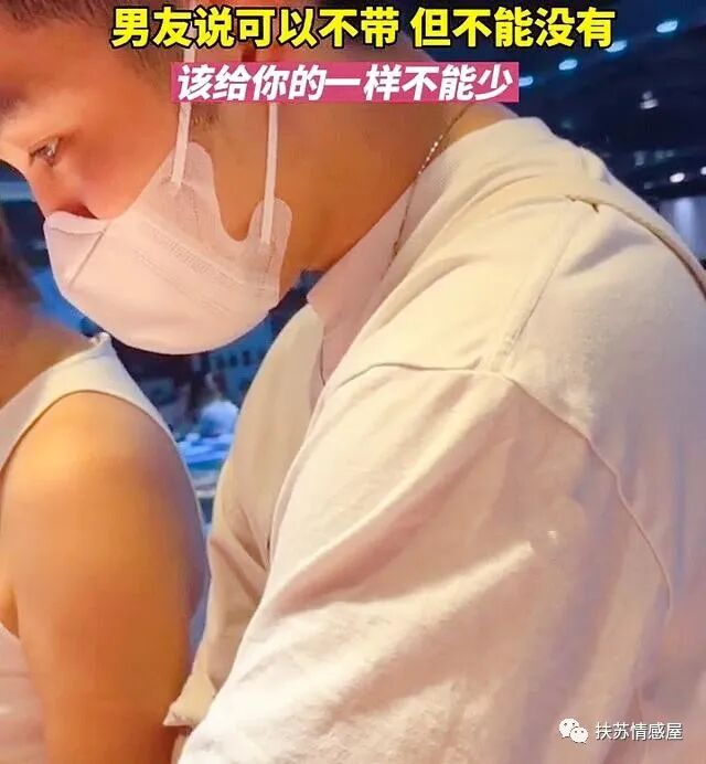 男生告诉女友,“你可以不带,但不能没有,该给你的一样都不能少…”