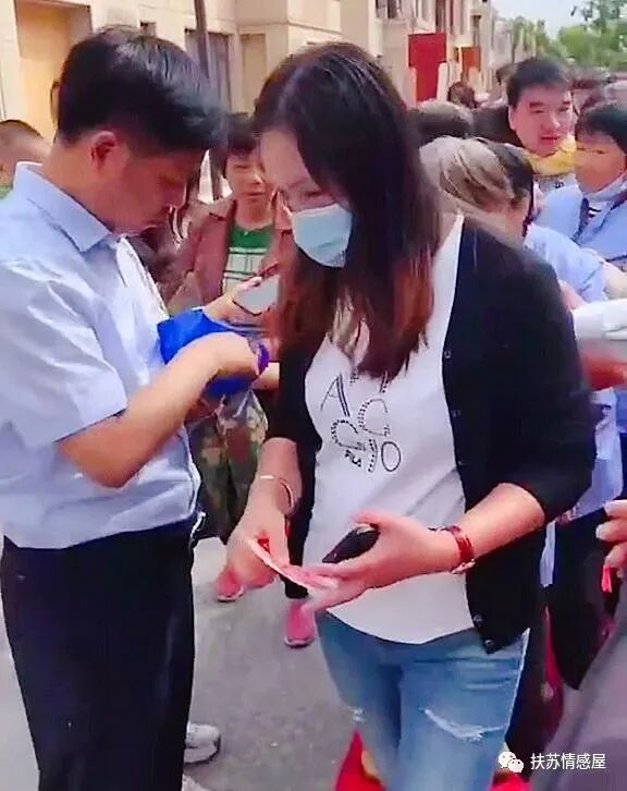 近日,江苏泰州,有一个大户人家给儿子娶媳妇,邀请了全社区所有的人参加,他们家人站在门口,挨个的给邻居们发钱。