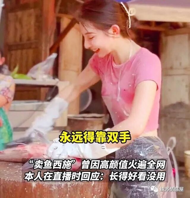 其实类似于这样的人,在网络上还有很多,曾出现过羊肉西施,卖菜西施和这位卖鱼西施,她们都没有因为走红而丧失初心。