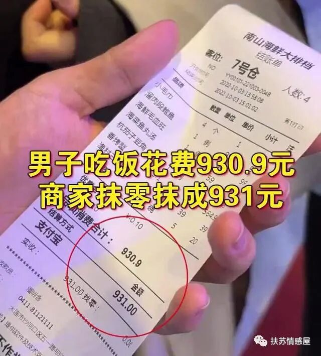 但某些商家不同,他们的抹零方式是反向抹零,天平朝顾客倾斜,非但不能给到顾客实惠,反而还要多收顾客的钱,美其名曰四舍五入…