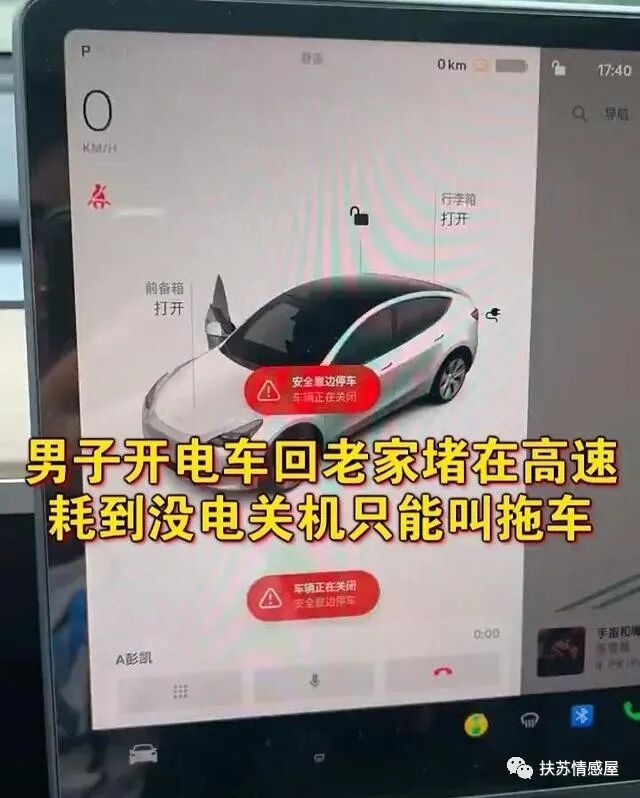 本来堵车不可怕,可他却开的是一辆电动车,经过一夜的滑行消耗,车子早已经不堪重负,所有的电都被耗完了,在高速上成了半残废!