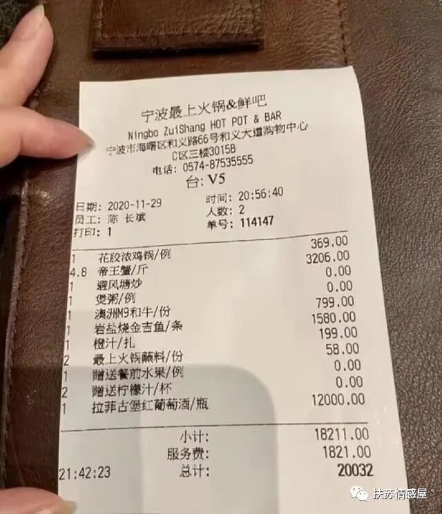 两个人进入火锅店以后,杨女士就一顿操作猛如虎,噼噼啪啪地点了两万多块钱,男子看到账单以后,借尿遁直接离开了现场!