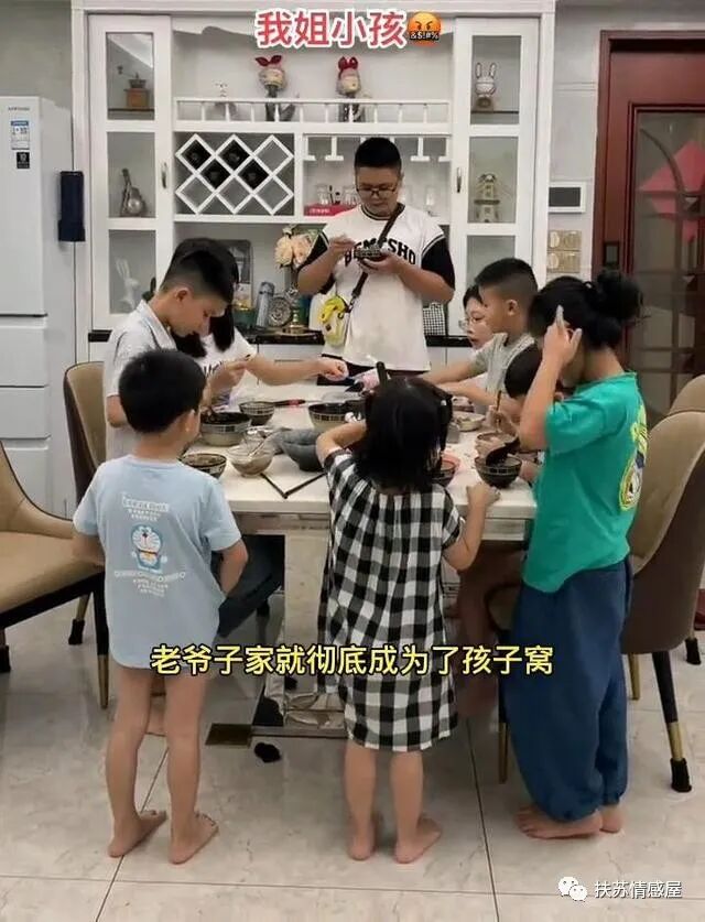 今年的这个暑假,老爷子又迎来了人生的高光时刻,十个外孙一起去到她家过暑假,第一天安排满汉全席,不到三天就开始节衣缩食了!