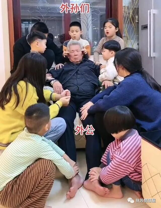 好在几个外孙还算懂事,到了晚上看外公累了,围在一起给老两口捶背按摩,几个孩子玩得不亦乐乎,一天的辛劳也总算没有白费!