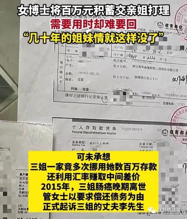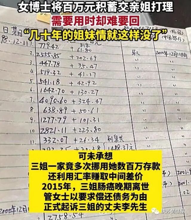 可未曾想,这个所谓的亲姐却在她的钱上动手脚,多次挪用她的钱赚取外汇,2015年姐姐因病去世,官女士找姐夫李先生要钱!