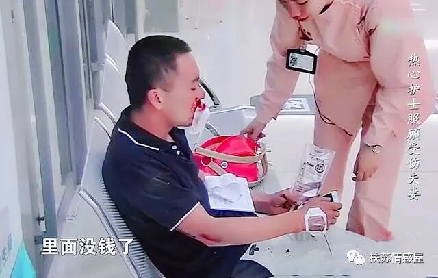 这点钱连挂号都不够,但男子看到老婆伤势比较严重,就用20块钱给老婆挂号,而他因为没钱挂号,只能在旁边坐着,时不时的发出哀嚎声!