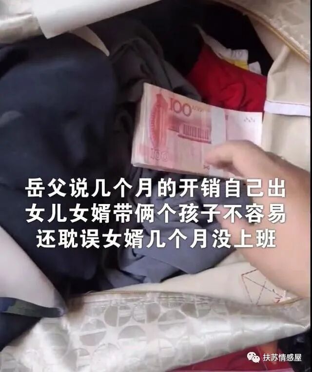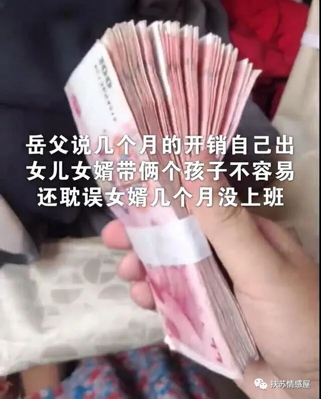 岳父说女婿辛苦照顾四个月,天天都在家陪着没有收入,他们夫妻又带着两个孩子,家庭开销也大,就力所能及的帮衬一点!
