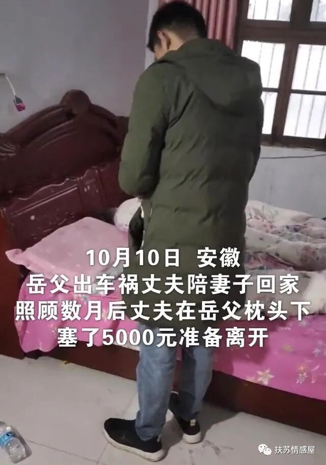 如今岳父的身体康复,基本生活也能够自理了,年轻人有自己的生活,于是就告别岳父回家,临走时女男子对岳父还不放心,偷偷留下5000块!