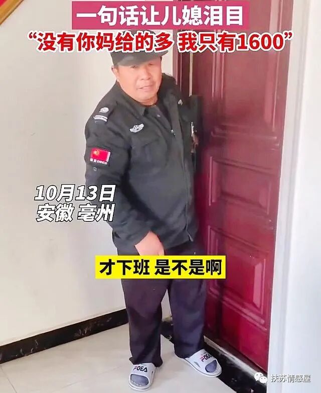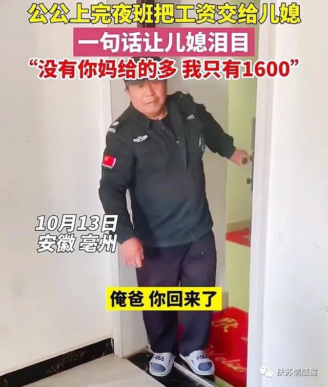 安徽:公公上完夜班回家把工资交给儿媳,没有你妈给的多,我只有1600