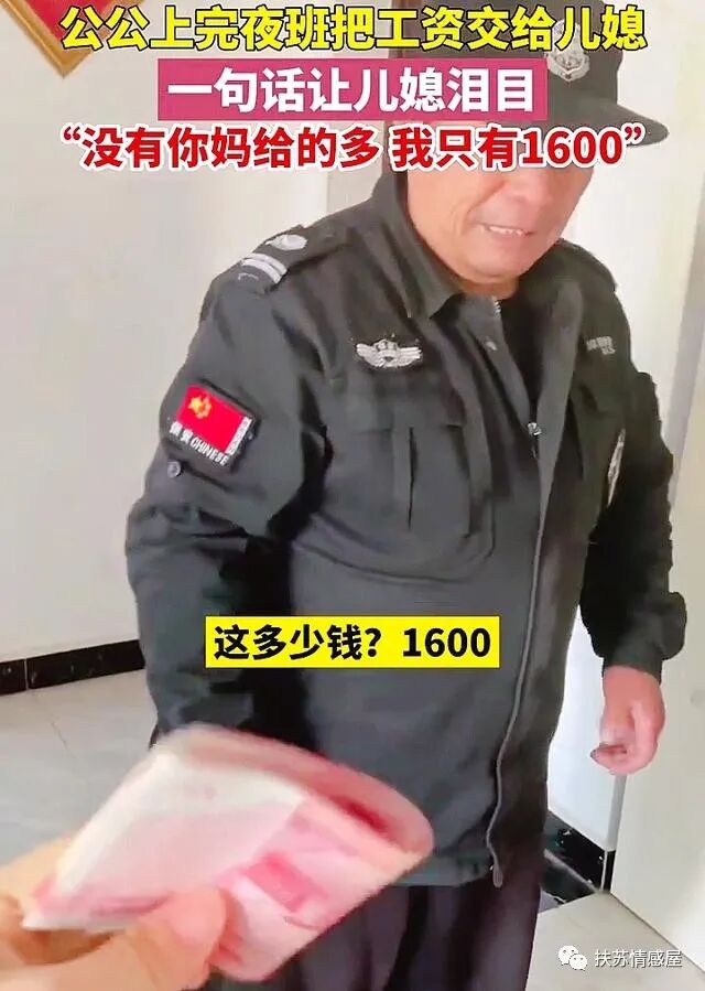 女子问公公多少钱,公公的脸上瞬间有些尴尬,难为情地跟她说1600,没有你妈给的多,我只有1600…