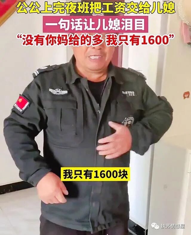女子的公公就是这样的人,虽然他没有太大的能力,只能出去给别人做保安,也一个月挣钱也不多,工资到手也就只有1600元!