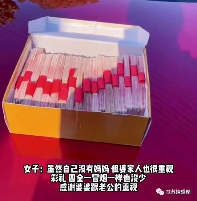 另外,女子还表示虽然自己没有娘家人,但婆家并未亏待我,该给的东西一样都没有少,反而给了更多,婆家的举动让我感到很温馨!