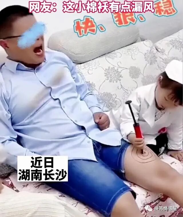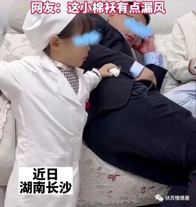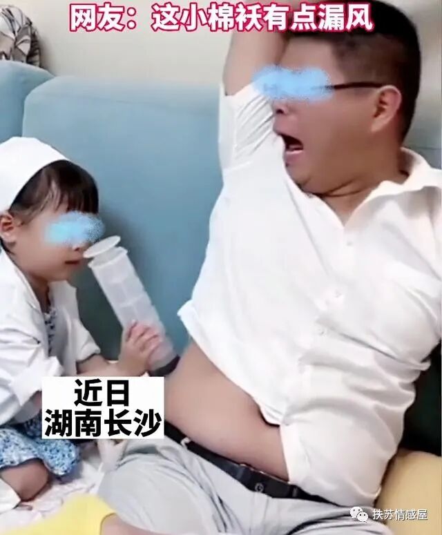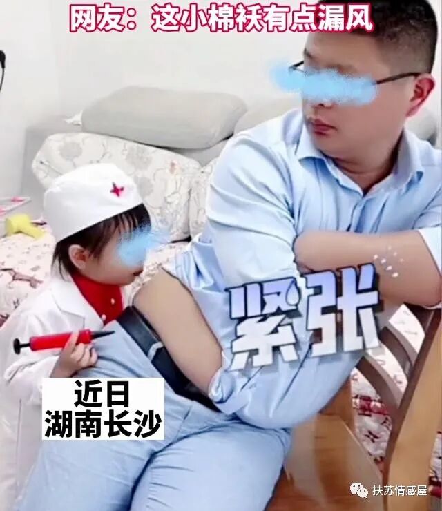 近日,湖南长沙,有一个小女孩跟爸爸玩过家家游戏,大致内容就是模仿医生打针!