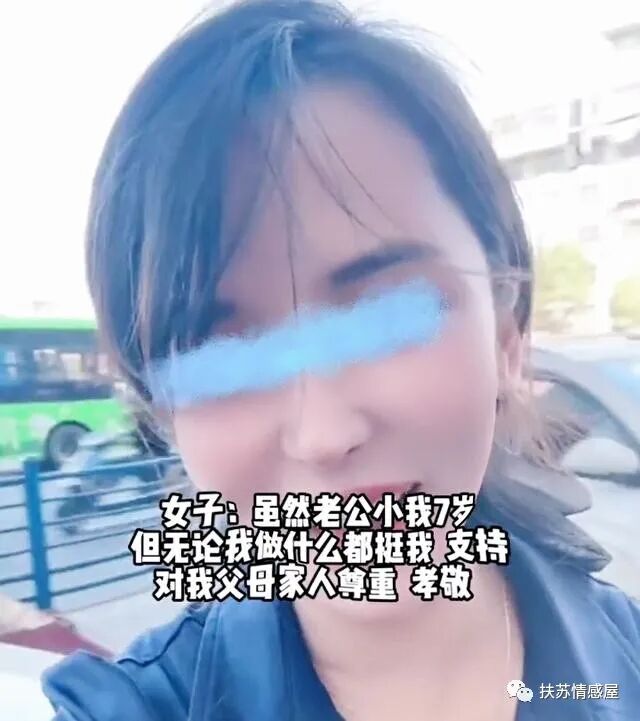 从画面中来看,女子虽然年龄比老公大,但她的样貌显年轻,再加上颜值在线,也难怪能让男人千里奔赴!